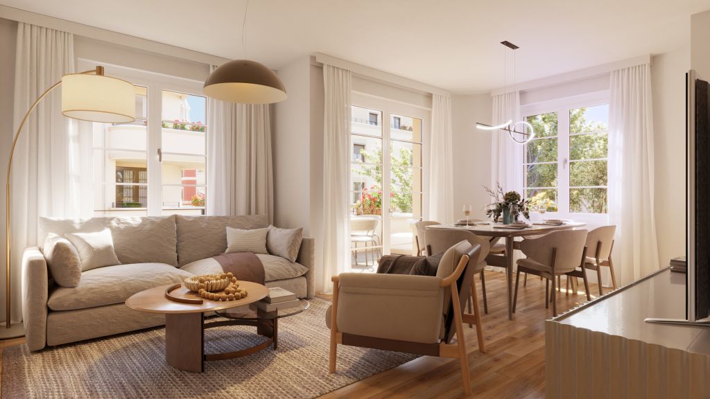 In der Nachbarschaft zum Filmpark Babelsberg entstehen vier exklusive Stadtvillen, die modernes Wohnen mit architektonischer Raffinesse verbinden. Die Gestaltung orientiert sich am klassischen Art-Déco-Stil und überzeugt durch klare Linien, hohe Fensterfronten sowie großzügige Balkone und Terrassen. Diese Elemente schaffen ein offenes, lichtdurchflutetes Wohnambiente mit hohem Aufenthaltskomfort.